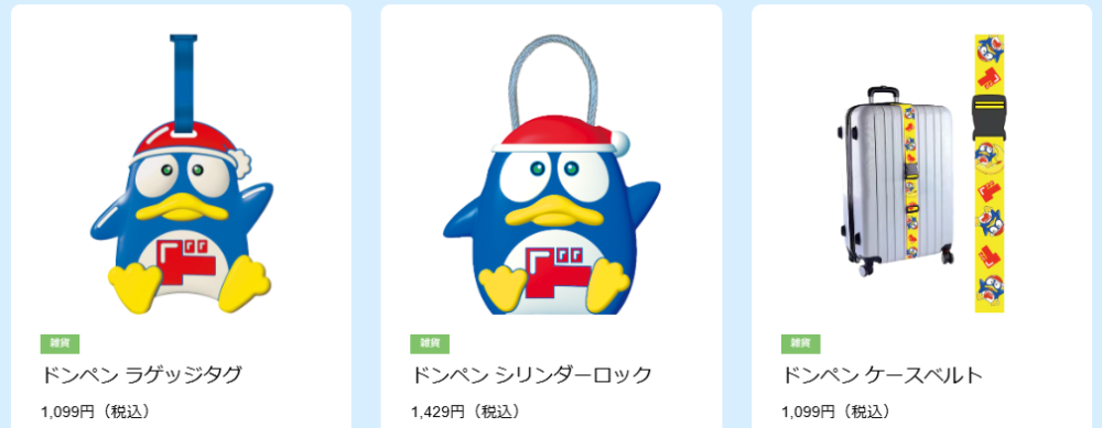 店舗によって取り扱いアイテムは異なるようですが、ドンペンアイテムには下記のようなものがあります!