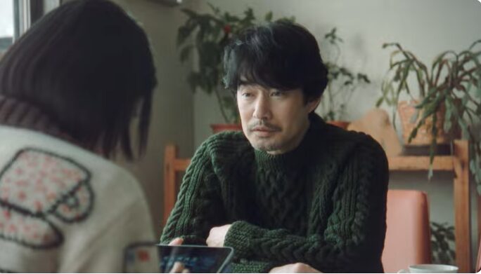竹野内豊さんが着用しているグリーンのニットセーターは