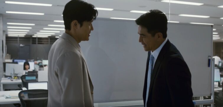 儀堂(早瀬)が部下・足立と寺本に夏海の過去を調べさせて報告を受けているシーンで