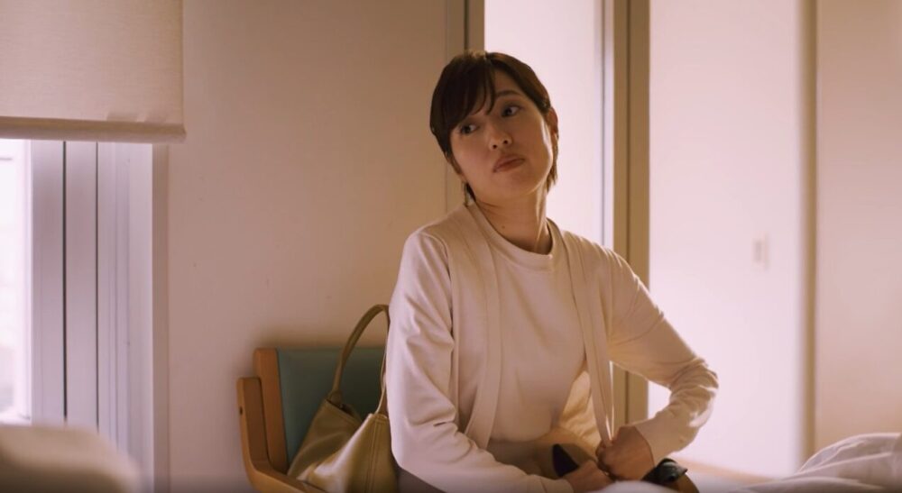 一香の妹・綾香が病院で倒れたことで後を付けていたことがバレてしまいロビーで話すシーンにて。